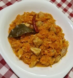 2. A vöröshagymát pucolás után vágjuk apróra, majd tegyünk olajat egy fazékba és pároljuk üvegesre.